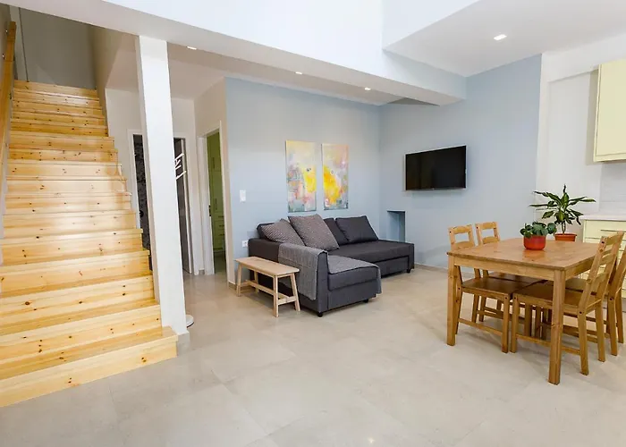 Disfruta de tus vacaciones en Kalamata en Analipseos 9 Loft Apartamento. Ideal para quienes buscan una experiencia auténtica, está situado a tan solo 1 km de la Biblioteca Pública y Galería de Kalamata y a alrededor de 1 km de la Victoria G. Karelias Collection of Greek Traditional Costumes. Los huéspedes pueden relajarse en la terraza del apartamento de 85 m^2, que se encuentra a un paso del Municipal Railway Park.
